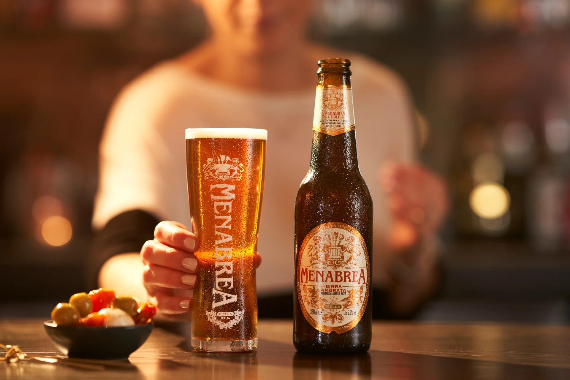 Ambrata, as the name would suggest, is characterized by it’s warm, amber colour. Reminiscent of the warm sky’s during a Biella sunset. It is sweet on the palate, with an intense aroma of toasted malt and a dry finish, well balanced by the use of noble hops. Pairs beautifully well with rice, chicken and cheese dishes.