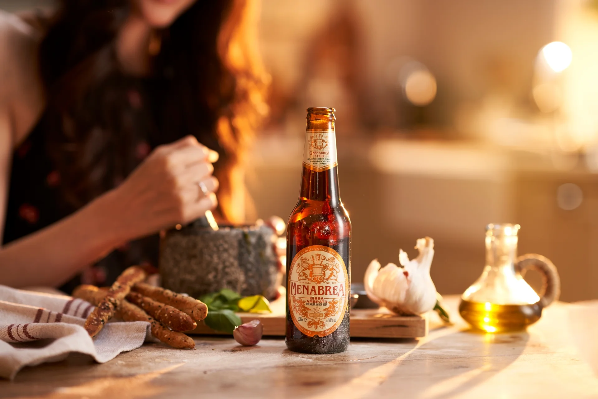 Ambrata, as the name would suggest, is characterized by it’s warm, amber colour. Reminiscent of the warm sky’s during a Biella sunset. It is sweet on the palate, with an intense aroma of toasted malt and a dry finish, well balanced by the use of noble hops. Pairs beautifully well with rice, chicken and cheese dishes.