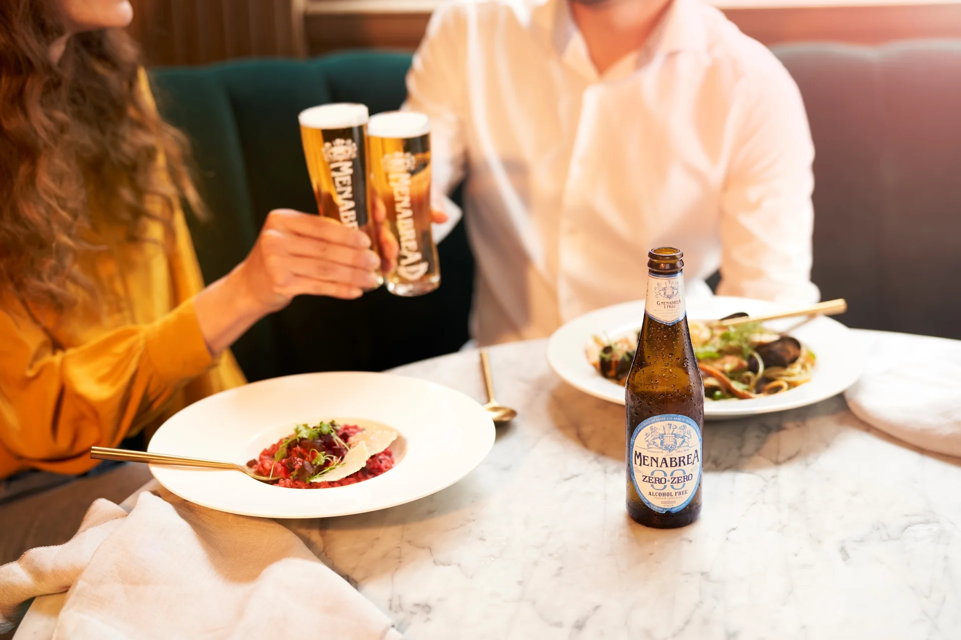 Zero Zero is a golden yellow, alcohol free lager birra. It has a finely balanced taste. Delicate, yet full bodied, showing the skills of Menabrea's master brewers.