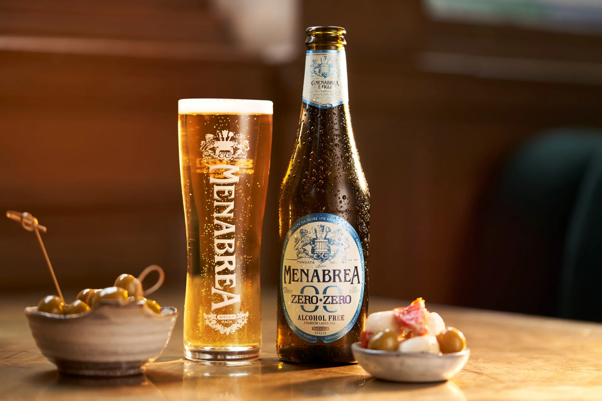 Zero Zero is a golden yellow, alcohol free lager birra. It has a finely balanced taste. Delicate, yet full bodied, showing the skills of Menabrea's master brewers.